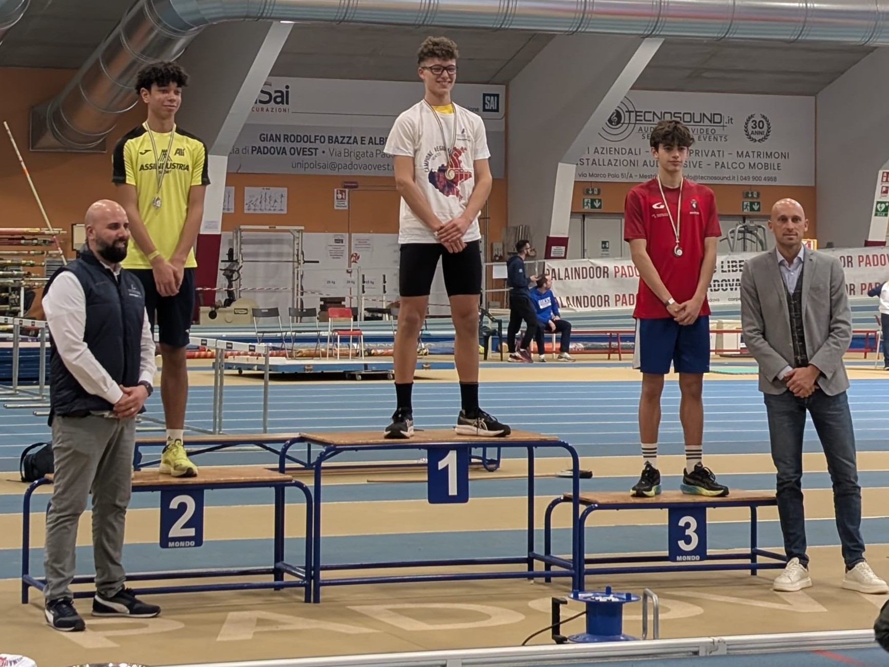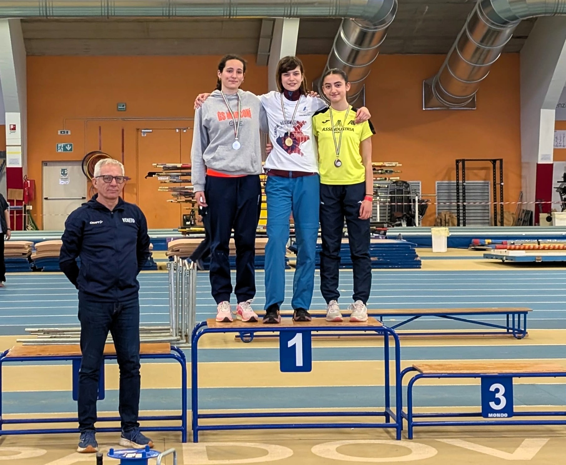 Il weekend ha offerto soddisfazioni anche dal settore giovanile (foto sotto). Ai Campionati Regionali Cadetti in programma al Palaindoor di Padova, Alessandro Gioppo ha conquistato il secondo posto nel triplo con 12.38, mentre Sara Paccagnella è salita sul terzo gradino del podio nell’asta con 2.40. Nel Triathlon provinciale Ragazzi, ospitato dalla pista “di casa” allo Stadio Colbachini di Padova, Sarah Omonekpe Okodonor ha chiuso terza totalizzando 1.737 punti, frutto di 5”00 sui 30 metri, 1.32 nell’alto e 9.02 nel lancio della palla da 2 kg.