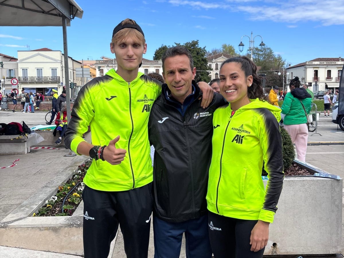 Nella foto Thomas D’Este, il Dt di Assindustria Sport Ruggero Pertile e Anna Frigerio