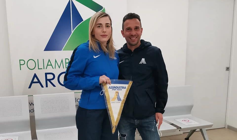 Nella foto l’atleta e capitana gialloblù Carol Zangobbo e Ruggero Pertile, ex maratoneta e ora Direttore Tecnico di Assindustria Sport, nella sede del Poliambulatorio Arcella.
