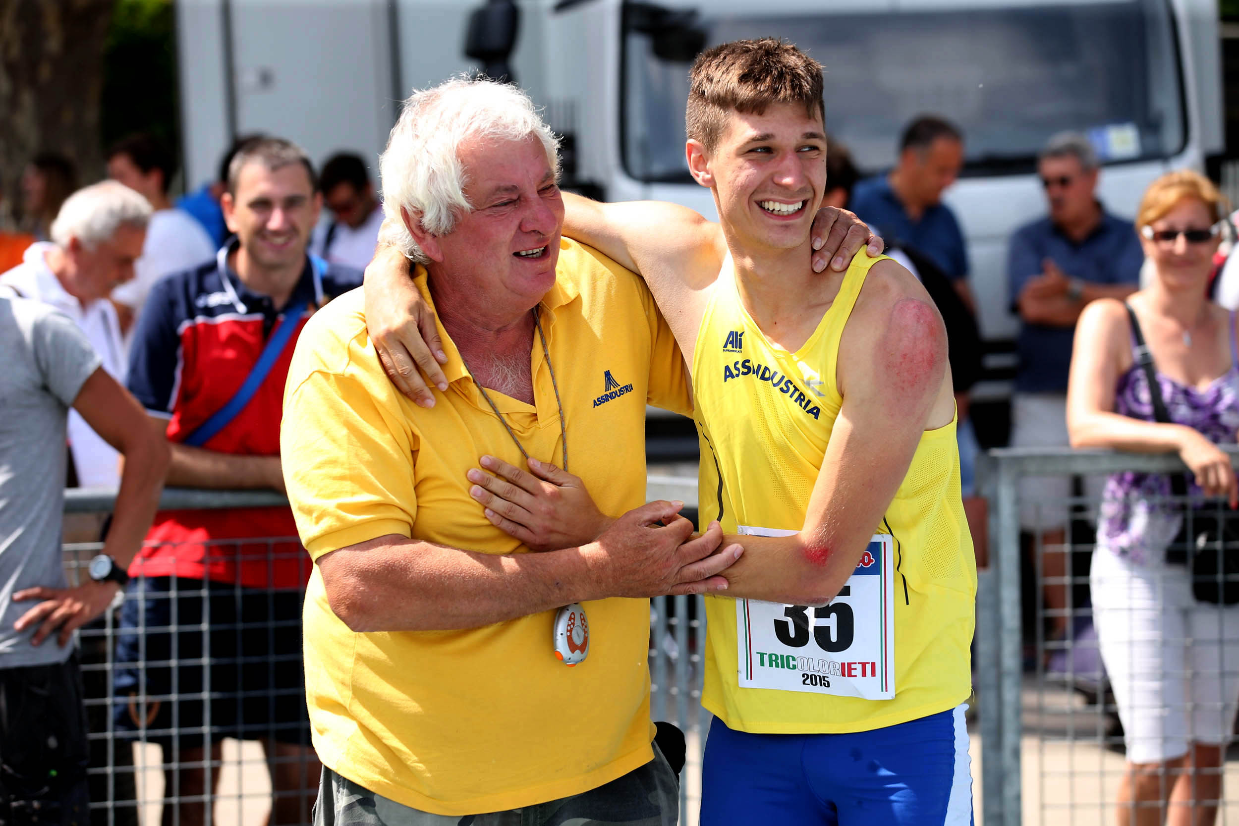 Nella foto (di Giancarlo Colombo/Fidal) Lodovico Cortelazzo assieme all’allenatore Gianfranco Temporin