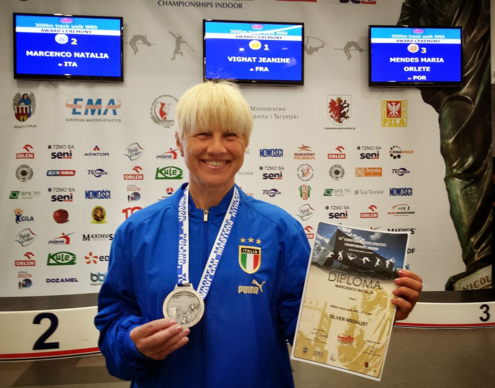 Chi la ferma più, Natalia Marcenco? A impreziosire una bacheca già ricchissima arrivano altre tre medaglie iridate: quelle conquistate ai Campionati europei master indoor di Torun (Polonia). La marciatrice di Assindustria Sport Padova ha infilato al collo una medaglia d’oro nei 5 chilometri di marcia su strada, categoria W60 (29’03”5 il suo tempo) e due medaglie d’argento, nella prova a squadre con la nazionale italiana e nei 3.000 su pista (17’11”18).