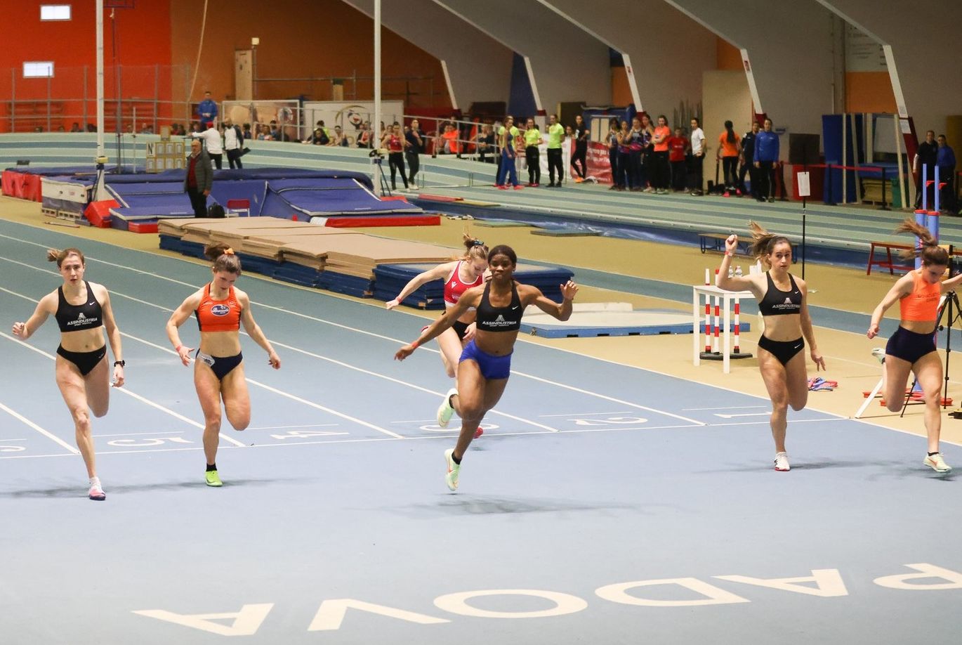 Nelle foto (Atleticamente/Fidal Veneto) Hope Esekheigbe nei 60 femminili al Palaindoor