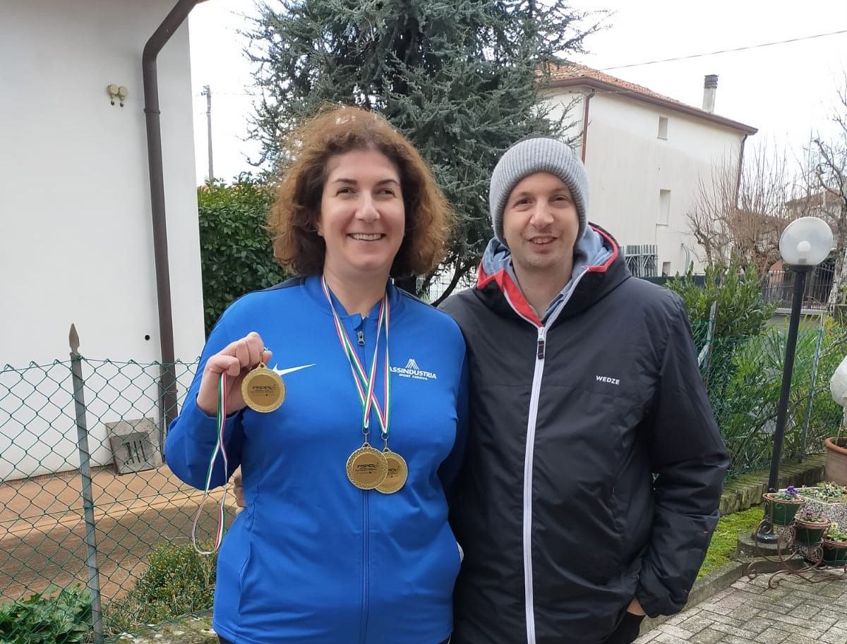 Nella foto Elena Favaretto assieme al suo accompagnatore con le medaglie vinte ad Ancona