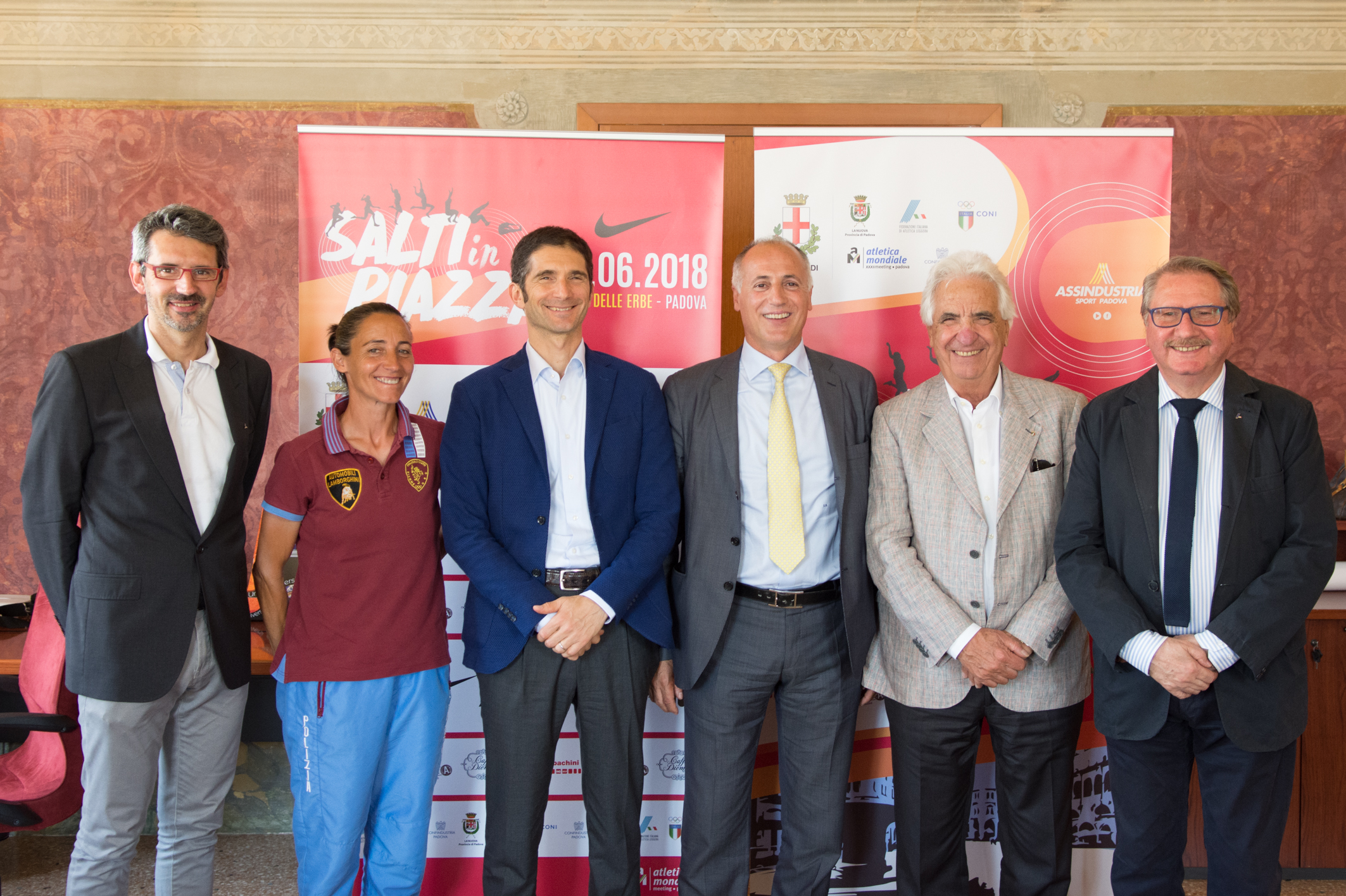 «L’obiettivo di “Salti in piazza” è chiaro: vogliamo portare la grande atletica internazionale tra la gente e offrire così uno spettacolo eccezionale sia a chi già ama questo sport - e potrà ammirare, a pochi passi da sé, campioni che solitamente vede in tivù - sia a chi non lo conosce. Vedendo dal vivo le emozioni che sanno regalare i campioni in pedana sarà impossibile non innamorarsi. Il senso di una manifestazione come questa è proprio quello di promuovere lo sport nel senso più pieno, portandolo tra la gente», sottolinea Leopoldo Destro, Presidente di Assindustria Sport, affiancato da Diego Bonavina, Assessore allo sport del Comune di Padova, Gianfranco Bardelle, Presidente Coni Veneto, Christian Zovico, Presidente Fidal Veneto, Rosanna Martin, Presidente comitato provinciale Fidal, e Dino Ponchio, Consigliere del Presidente federale. «La cornice messa a disposizione dall’Amministrazione comunale, che ringraziamo, è la migliore possibile: Piazza delle Erbe offre un teatro tanto insolito quanto esaltante. “Salti in piazza” sarà inoltre un ghiotto antipasto del XXXII Meeting internazionale “Città di Padova”, che il prossimo 2 settembre inaugurerà il rinnovato Stadio Colbachini, e sarà anche un volano richiamare i bambini e i ragazzi a cui non a caso è dedicato uno spazio speciale all’interno dell’evento con il “Grand Prix di Velocità”».