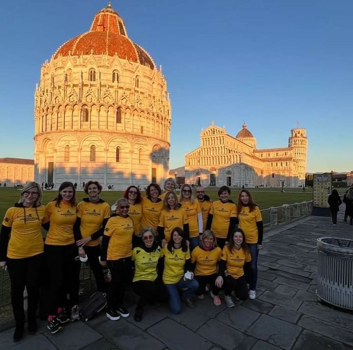 Eccole qui, le splendide atlete di Ryla Onlus: che bello vedere la loro macchia gialloblù alla Mezza maratona di Pisa, dove hanno fatto squadra assieme a coach Chiara Arrigoni.
