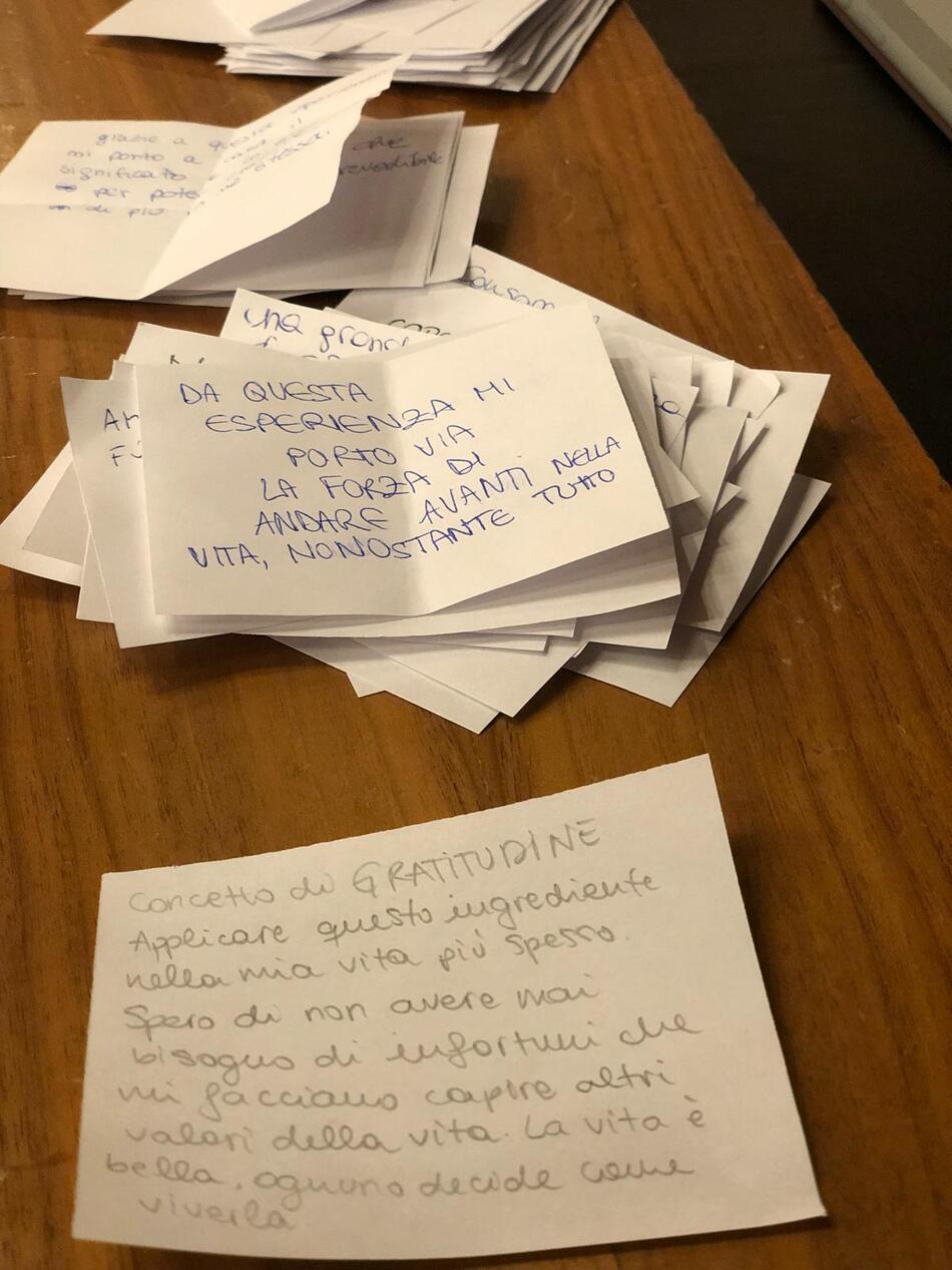 Particolarmente significativo il momento successivo, in cui gli studenti, a loro volta, hanno raccontato le loro esperienze e posto domande, indicando poi in alcuni post it cosa è rimasto loro dall’incontro e cosa pensano quando sentono la parola sport.