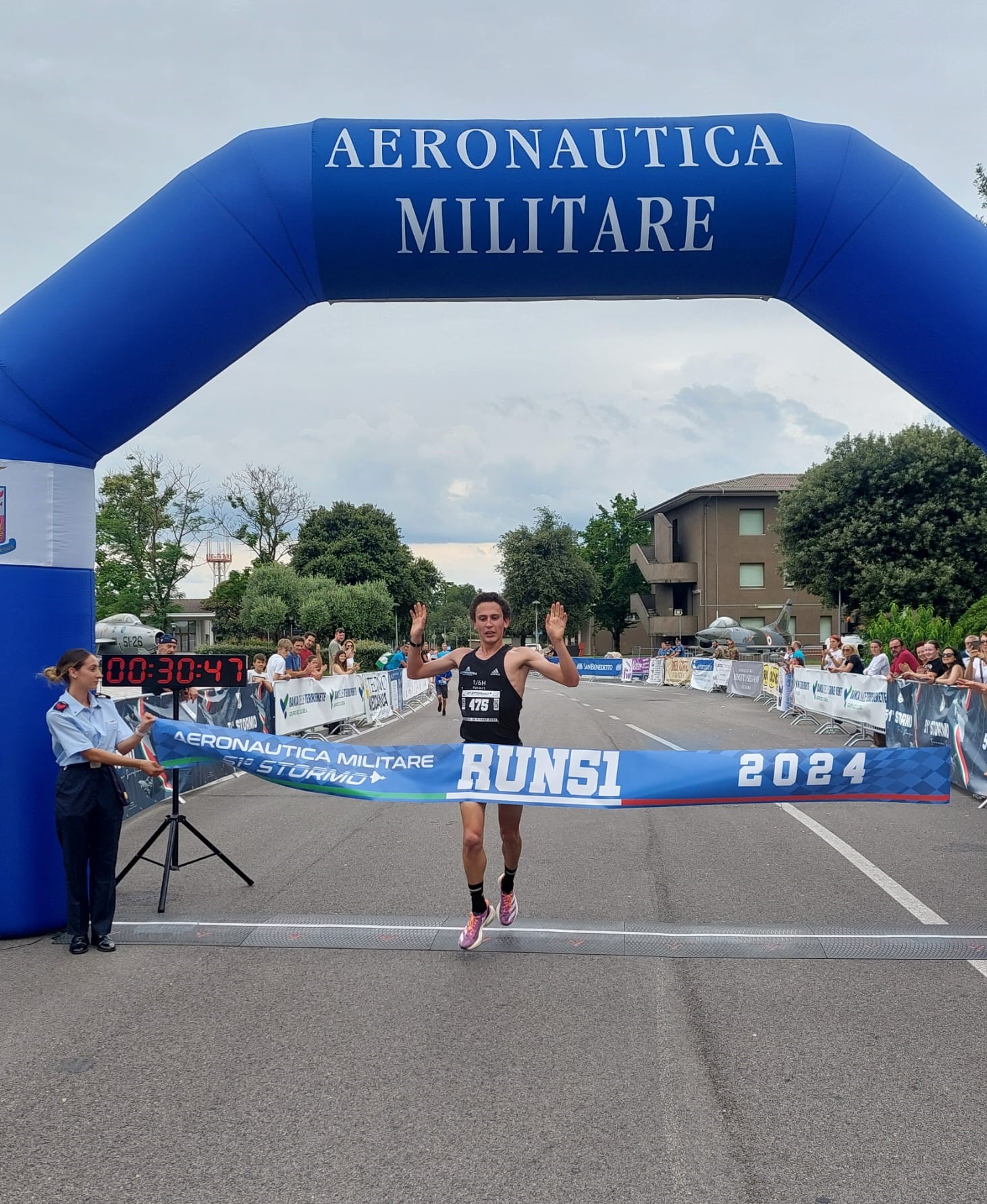 “Run51” prende il volo sulle ali dell’entusiasmo degli oltre tremila atleti (agonisti e no) che, domenica pomeriggio, evitato il maltempo, hanno fatto passerella nel cuore dell’aeroporto militare “Vittorio Bragadin” di Istrana (Treviso), correndo e camminando su un percorso che ha interessato anche le aree utilizzate dagli Eurofighter nelle fasi di rullaggio e decollo. Festa per Riccardo Martellato (Assindustria Sport) che si aggiudica la gara Fidal sulla distanza certificata di 10 chilometri. Martellato, 24 anni, padovano del Bassanello, già azzurrino nel cross (oltre che nel duathlon), ha chiuso in 30’47”, precedendo Ivan Basso (HRobert Running Team), staccato di oltre 3 minuti (33’58”), e Kevin Zanatta (Atl. Ponzano), giunto al traguardo in 34’53”.