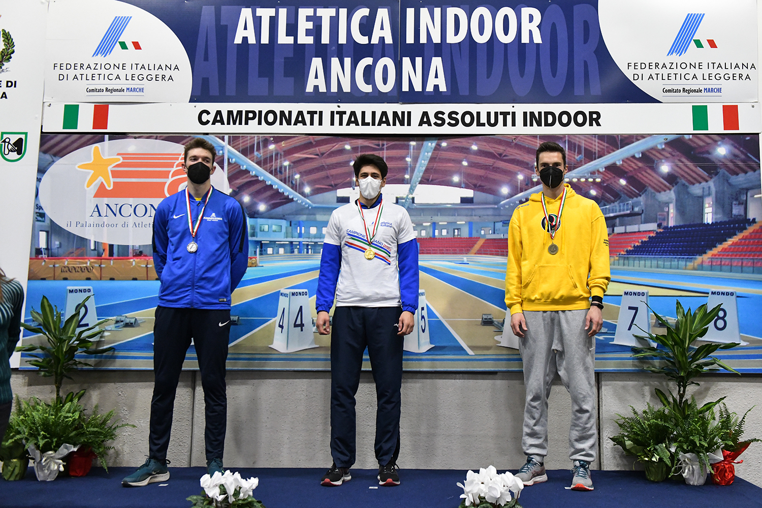Nella foto Matteo Miani primo da sinistra sul podio di Ancona (foto Grana/Fidal)