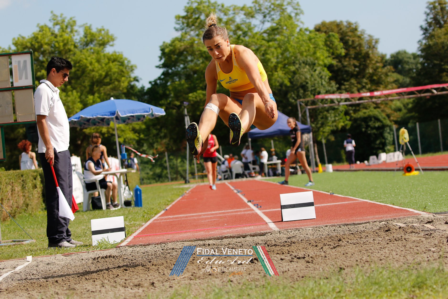 Nemmeno a pochi giorni dal Meeting internazionale "Città di Padova" si ferma l'attività di Assindustria Sport. La società gialloblù ha partecipato in forze alla due giorni che a Vittorio Veneto ha assegnato i titoli regionali assoluti e promesse. Fra le migliori prestazioni tecniche della rassegna i 6.07 metri (+0.9) saltati da Carol Zangobbo nel lungo (qui nella foto di Eduard Ardelean), unica atleta oltre il muro dei 6. Applausi anche per Michele Friso, che raggiunge i 60 metri tondi tondi nel martello. Ecco i nuovi campioni veneti: