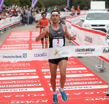 Nella foto Ruggero Pertile sul traguardo di Chia nel 2013