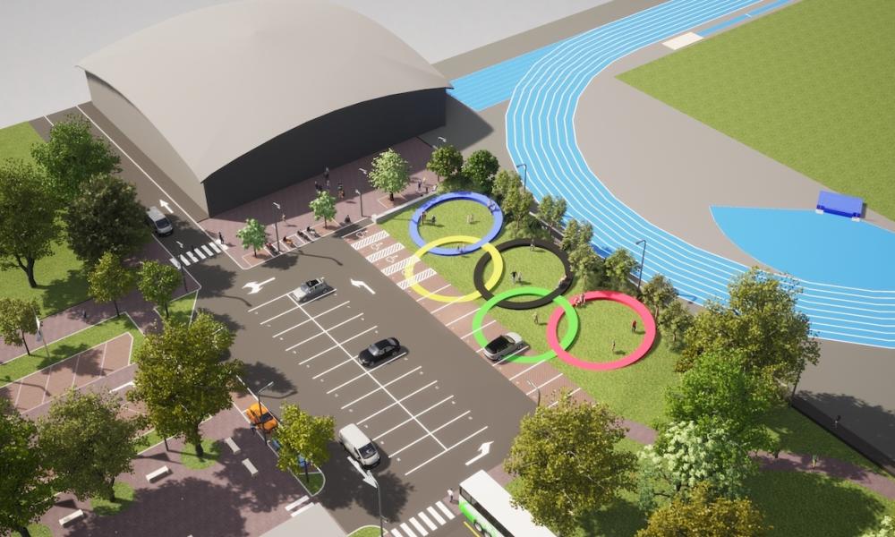 Davanti all'ingresso del Colbachini saranno realizzati una serie di cerchi olimpici, che potranno essere utilizzati anche come sedie, mentre una parte della piazza, come manto stradale, sarà colorata di rosso.