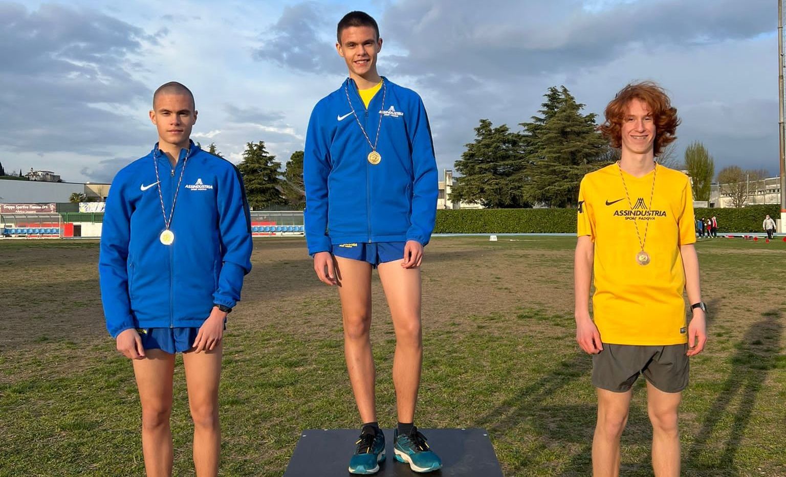 Ottimi risultati e tanto entusiasmo nella manifestazione di apertura estiva allo stadio Kennedy di Monselice. In casa Assindustria Sport ci sono prestazioni che vanno assolutamente segnalate, a partire dal podio interamente tinto di gialloblù nei 1000 cadetti, vinti da Gabriele Fioriani al fotofinish su Michele Fioriani (2’52”4 e 2’52”7), col terzo posto di Matteo Vallin (2’56”9, nella foto i tre atleti). Per Michele anche la terza piazza nell’alto (1.48), identico risultato conquistato da Santiago Prenzato negli 80 della stessa categoria (9”8), mentre, fra le cadette, Giulia Pigozzo ed Elena Moressa sono salite rispettivamente sul secondo e sul terzo gradino del podio nel lungo (4.55 e 4.52 metri).