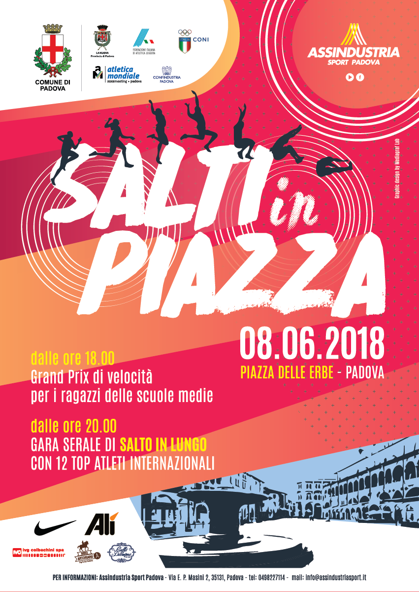 Assindustria Sport Padova, organizza la 1°edizione dei SALTI IN PIAZZA, gara Internazionale di salto in lungo, in Piazza delle Erbe a Padova VENERDI’ 8 GIUGNO con inizio alle ore 20.